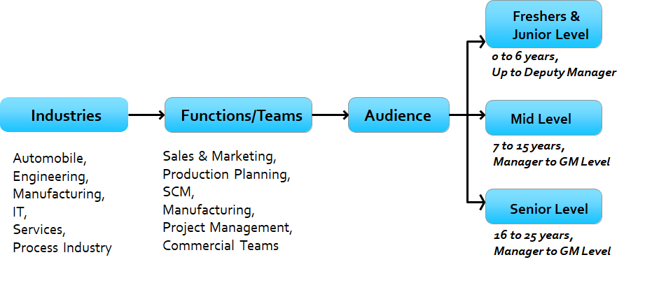 Industries: Our workshop is most suited for organisations engaged in the Automobile, Engineering, Manufacturing, IT, Services and Process industry segments.